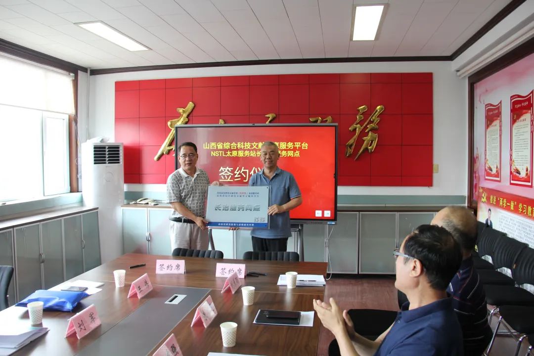 座谈会上,调研组详细听取了市科技创新发展研究院关于事业单位机构改革、科技文献资源综合利用、科技情报咨询服务等方面的情况介绍,就科技报告制度建设、科技战略政策研究等工作开展了深入交流,并对山西省综合科技文献服务平台、NSTL太原服务站长治市服务网点进行了签约和授牌。